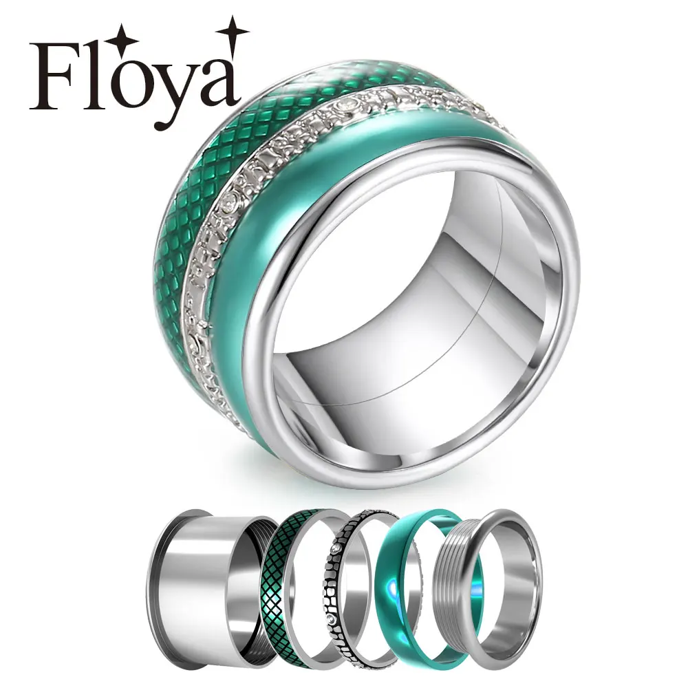 Floya Mavi Halkalar Dondur Buyuk Bandi Kadin Orijinal 361 Paslanmaz Celik Yuzuk Vintage Kombinasyon Severler Yuzuk Zarif Hediye Kizlar Icin