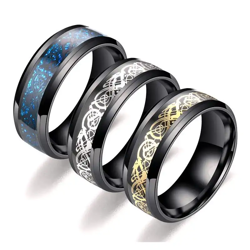 8mm Paslanmaz Celik Yuzuk Yeni Moda Erkekler Taki Nisan Retro Vintage Yuzukler Ejderha Dovme Taki Alyans Toptan Halkalar Aliexpress