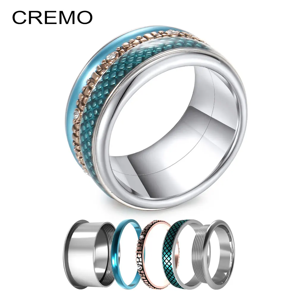 Cremo Boho Paslanmaz Celik Yuzuk Kadinlar Icin Vintage Spinner Istiflenebilir Yuzukler Gul Altin Degistirilebilir Dugun Band