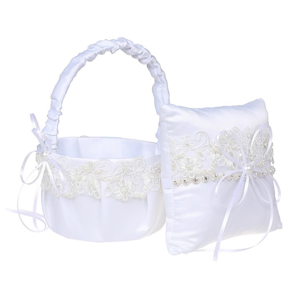 7 7 Inc Dugun Cicek Sepeti Beyaz Saten Yuzuk Tasiyici Yastik Ve Dantel Cicek Kiz Basket Dugun Dekorasyon Malzemeleri Seti Parti Kendin Yap Suslemeleri Aliexpress