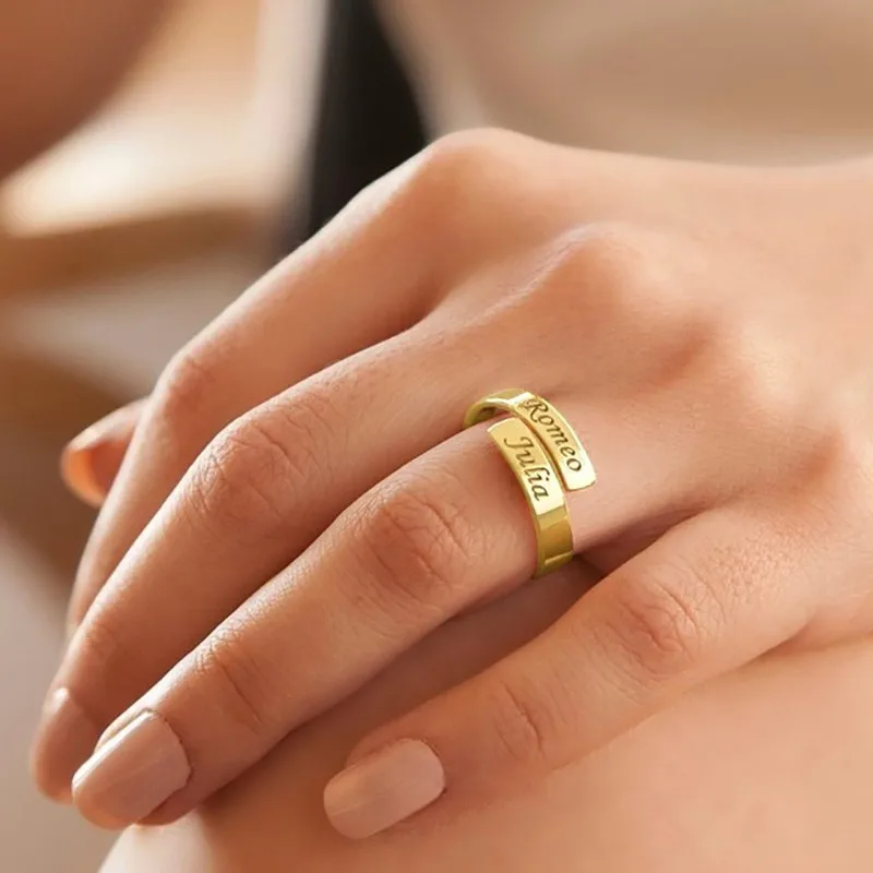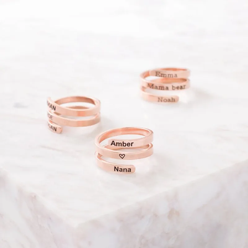 Gul Altin Kadinlar Icin Ozel Yuzuk Iki Isim Damgali Sarilmak Cozgu Taki Kisisellestirilmis Hediye Null Aliexpress