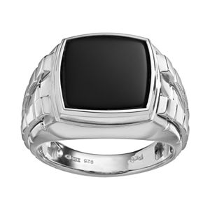 Men S Sterling Silver Onyx Diamond Accent Ring