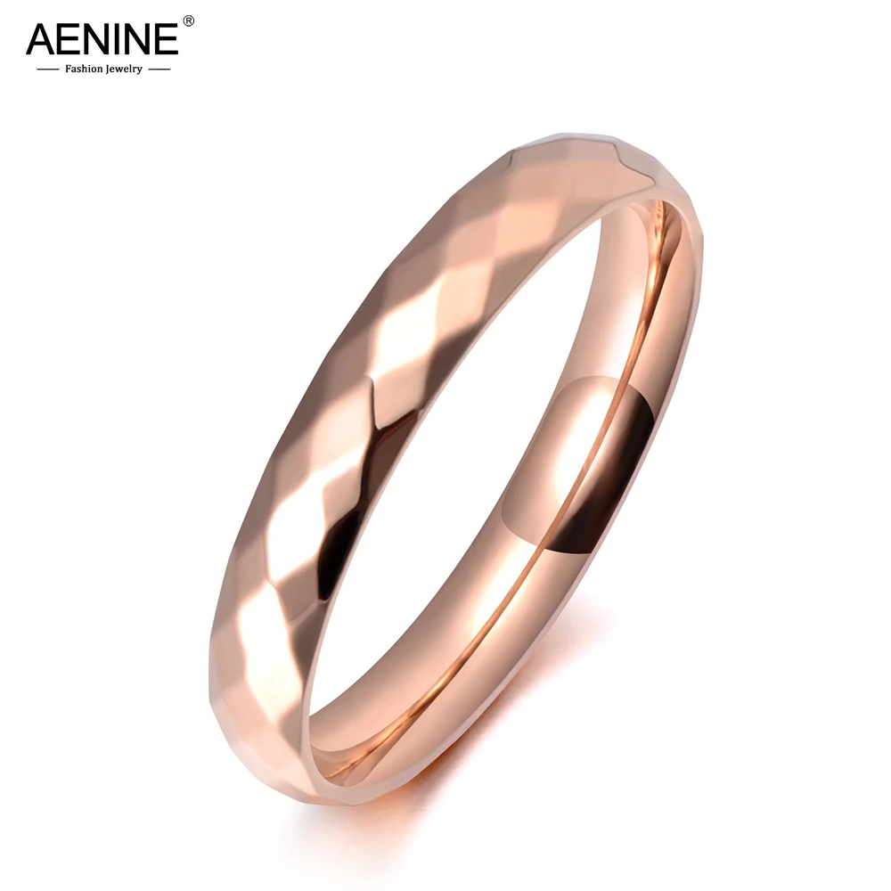 Aenine Moda Ofis Tarzi Paslanmaz Celik 3mm Genis Kesim Yuz Parti Yuzuk Gul Altin Kokteyl Yuzuk Taki Kadinlar Icin Kizlar Ar19059 Halkalar Aliexpress
