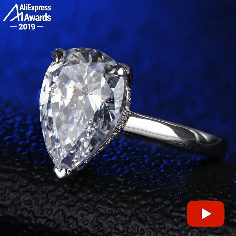 5 Karat Armut Kesim 14 10mm S925 Ayar Gumus Yuzuk Sona Elmas Tek Tas Guzel Yuzuk Benzersiz Tarzi Ask Dugun Nisan Halkalar Aliexpress