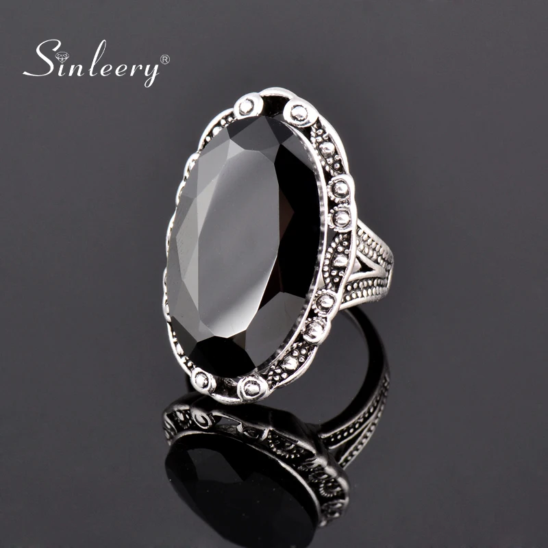 Sinleery Vintage Buyuk Siyah Oval Tas Yuzuk Kadinlar Icin Boyutu 6 7 8 9 10 Antika Gumus Renk Taki Anel Jz516 Ssf Ring For Women Size Stone Rings For Womenstone Ring Aliexpress