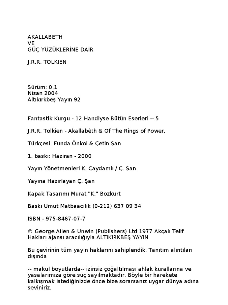 Akallabeth Ve Guc Yuzuklerine Dair Tolkien Pdf Google Drive
