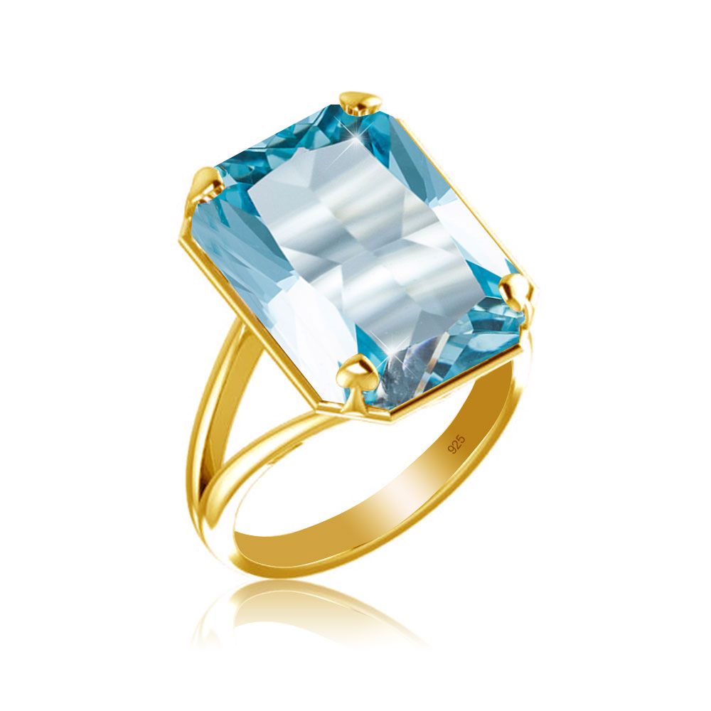 Altin Kaplama Akuamarin Tasli 925 Ayar Gumus Yuzuk