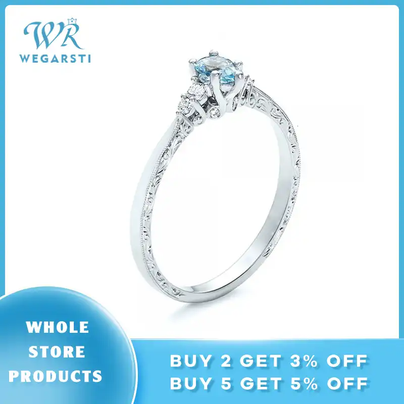 Wegarasti Gumus 925 Taki Yuzuk Akuamarin Moda Parti Yuvarlak Klasik 925 Ayar Gumus Yuzuk Taki Kadin Nisan Hediye Halkalar Aliexpress