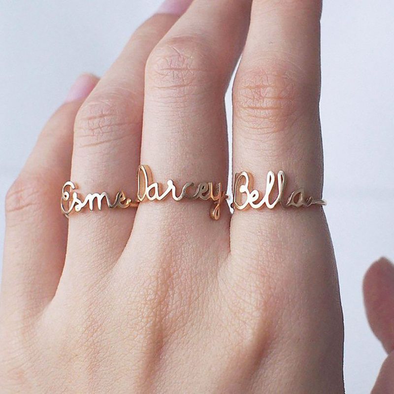 Fanssteel Paslanmaz Celik Taki Ozellestirilmis 3 Harfler Harfleri Alfabe Numaralari Adi Altin Kare Yuzuk Kisisellestirilmis Hediye Null Aliexpress