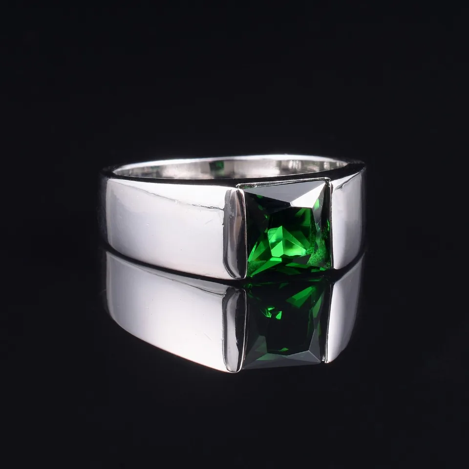 Pria Eternity 925 Sterling Perak Square Hijau Alami Batu Permata Cincin Solitaire Ukuran 8 12 Ring Size Ring Ring925 Sterling Gemstone Rings Aliexpress