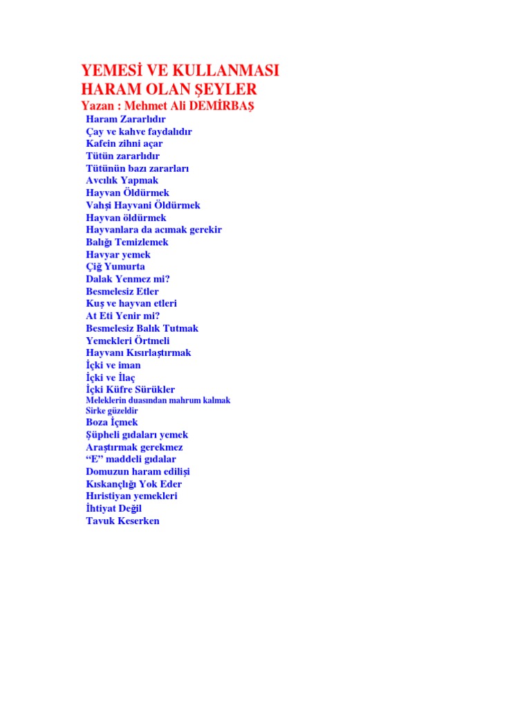 Yemesi Ve Lmas Haram Olan Seyler Mehmet Ali Rba