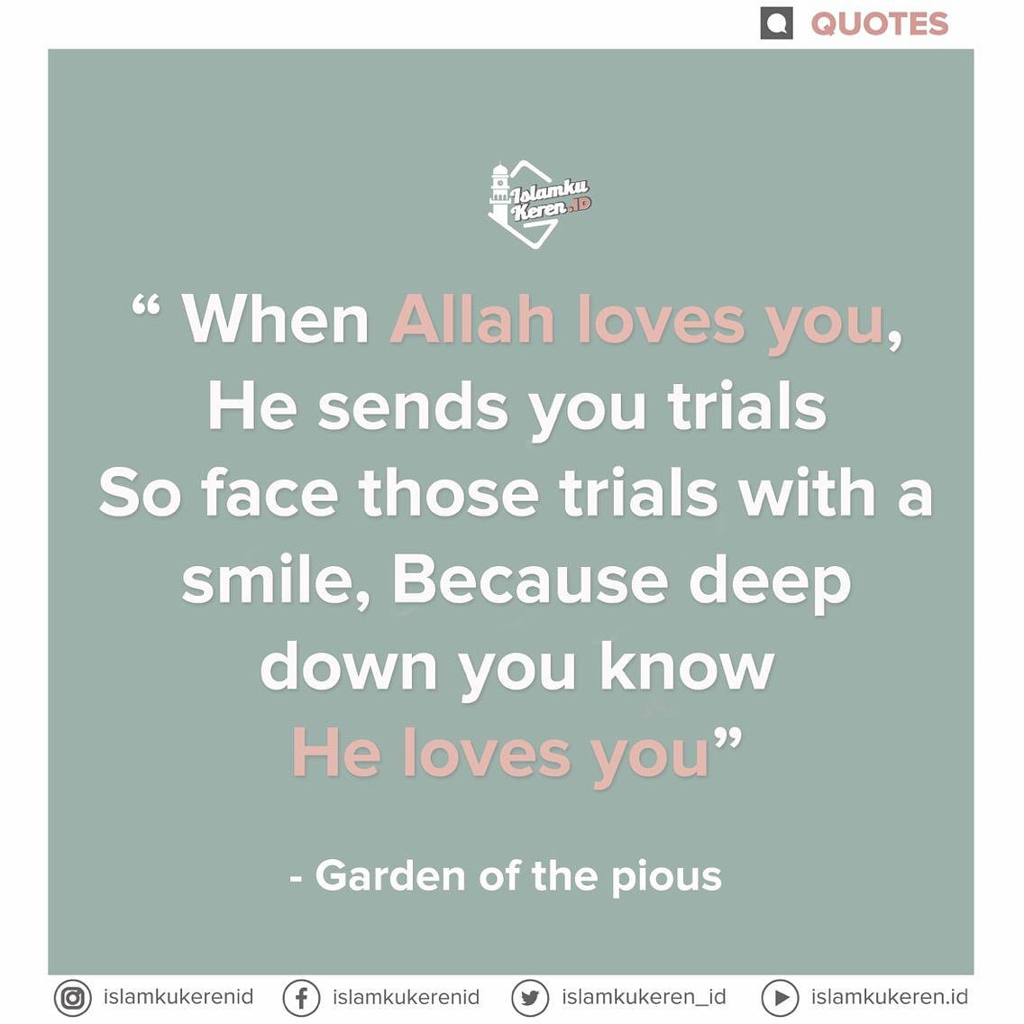 Islamkukeren Id En Twitter When Allah Loves You He Send You Trials So Face Thosetrial With Smile Because Deep Down You Know He Loves You Garden Of The Pious Https T Co Yg58iibhuo