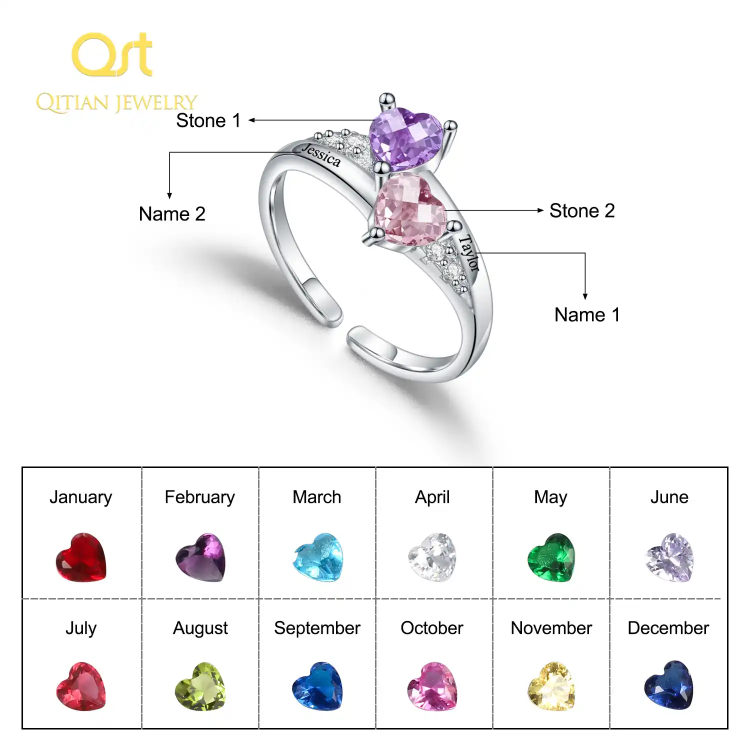Qitian Kisisellestirilmis Gumus Renk Kazinmis Isim Bakir Yuzukler Kadinlar Icin Ozellestirilmis 3 Kalp Birthstones Alyans Hediyeler Anne Icin Null Aliexpress