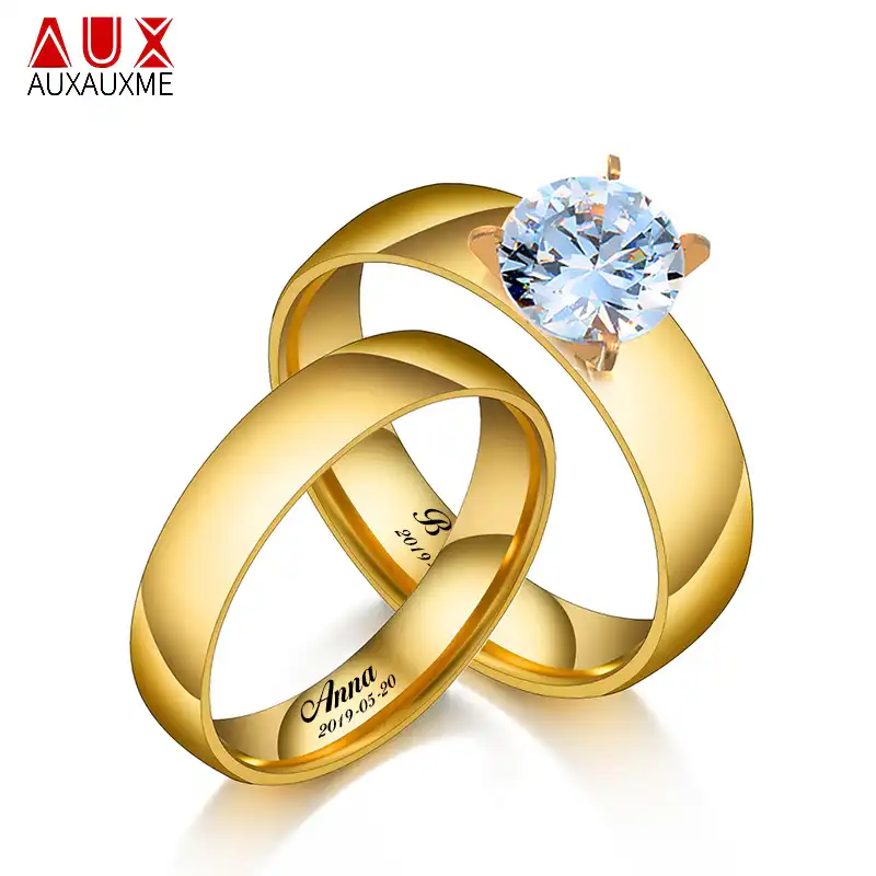Auxauxme Shining Kubik Zirkon Sevgilisi Alyans Altin Paslanmaz Celik Oyuk Adi Tarih Dugun Band Yuzuk Cift Kadin Erkek Nisan Yuzukleri Aliexpress