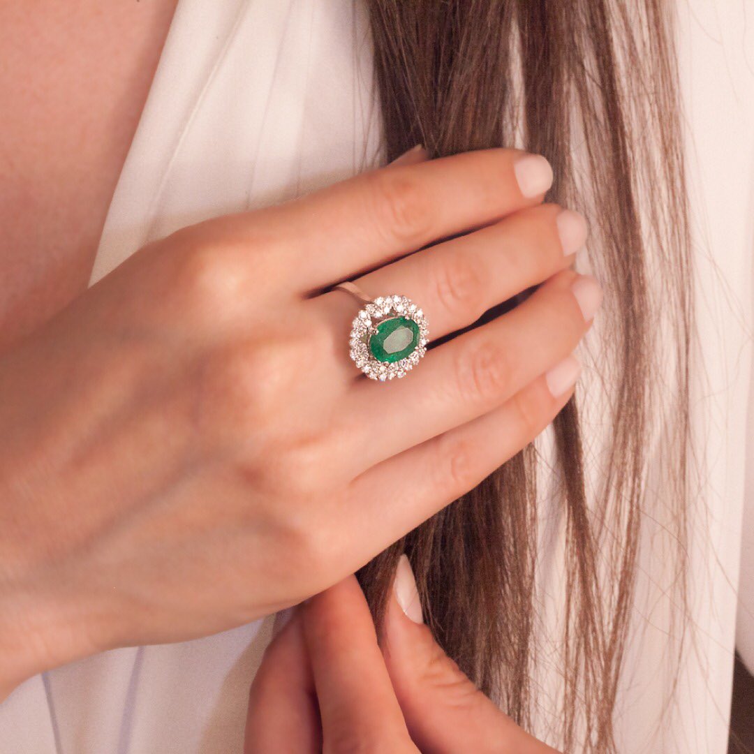 Pirlanta Oval Kesim Zumrut Yuzuk Rde01968 Aris Pirlanta