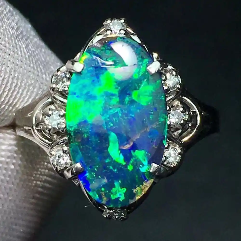 Opal Yuzuk Guzel Taki Pt900 Altin 100 Dogal Avustralya Opal Tas 2 44ct Altin Elmas Tas Kadin Yuzuk Kadin Yuzuk Halkalar Aliexpress