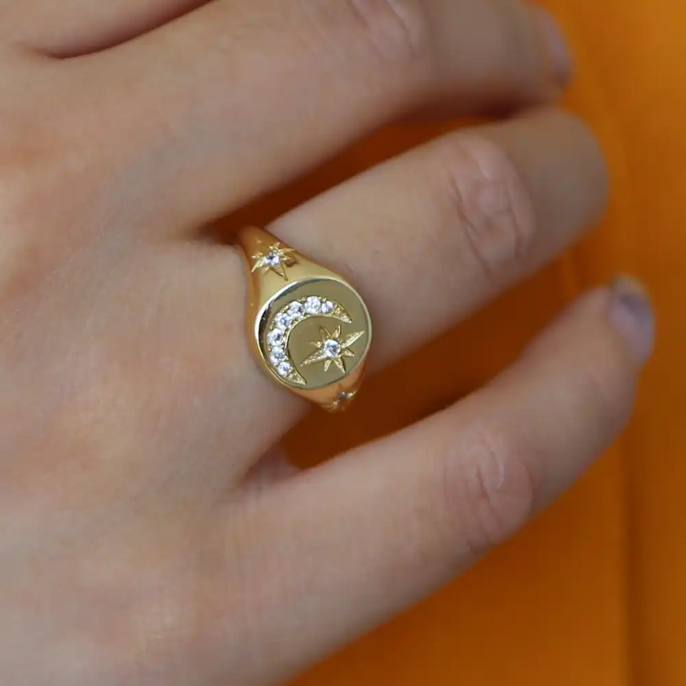 14 Ayar Altin Ay Yildiz Trendy Yuzuk