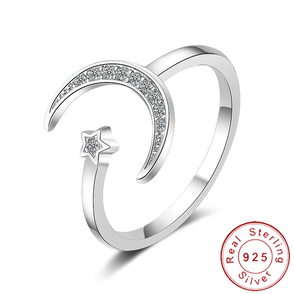 Toptan Avrupa Taki 925 Ayar Gumus Yuzuk Ay Yildiz Acik Uyar 925 Ayar Gumus Yuzuk Kadinlar