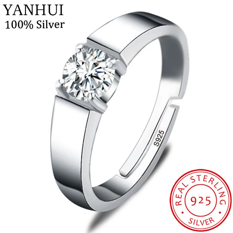Yanhui Sertifika Ile Erkekler 925 Gumus Ayarlanabilir Yuzuk Basit Solitaire 1ct Zirkon Elmas Nisan Alyanslar Erkekler Icin Halkalar Aliexpress
