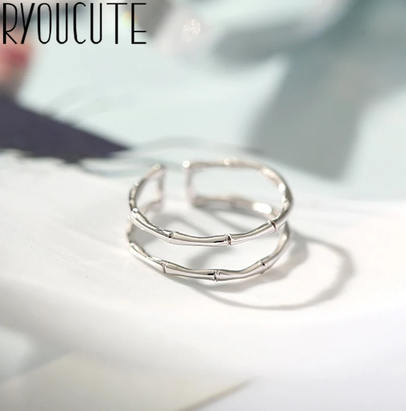 100 Gercek Saf 925 Ayar Gumus Yuzuk Moda Basit Bambu Tasarim Altin Ince Kucuk Parmak Acik Yuzukler Kadinlar Taki Icin Hediye Dugun Bantlari Aliexpress
