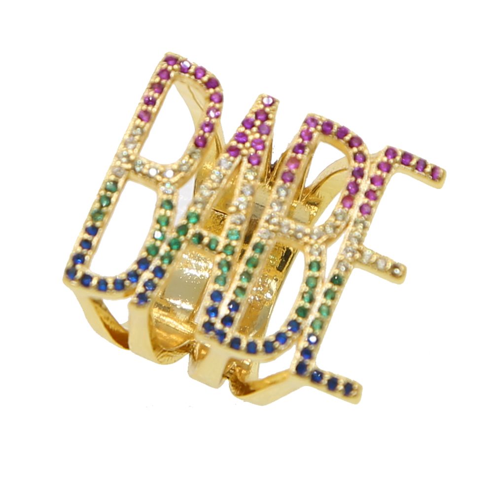 Satin Al Moda Altin Renk Dolgulu Bebek Harfler Yuzukler Gokkusagi Cz Kadin Adi Yuzuk Kadin Bildirimi Taki Band Acik Halkalar Icin Severler 13 66 Dhgate Com Da