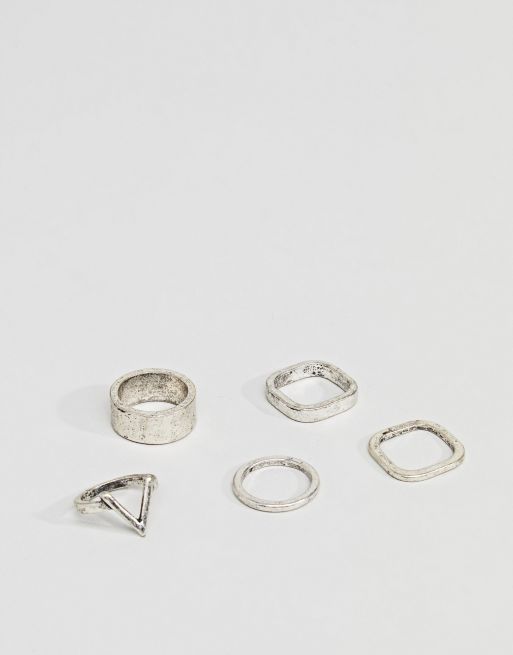Bershka Ring 5 Pack In Silver Asos