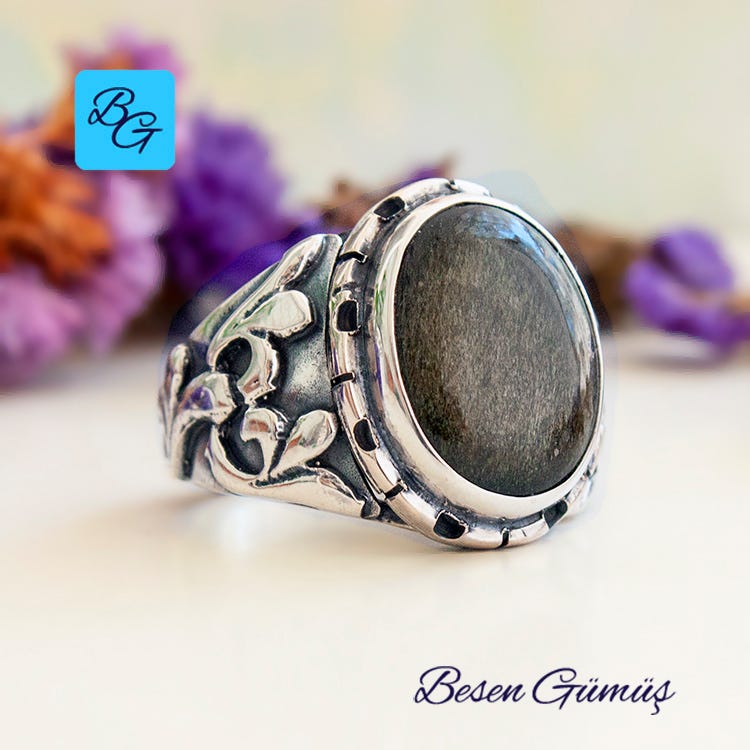 Obsidyen Tasli Erkek Gumus Yuzuk By Besen Gumus Medium