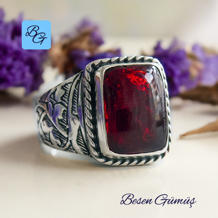 Yakut Tasli El Yapimi Gumus Erkek Yuzuk Gumus Yuzuk Gumus Yuzuk