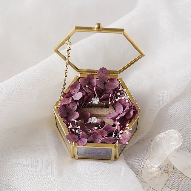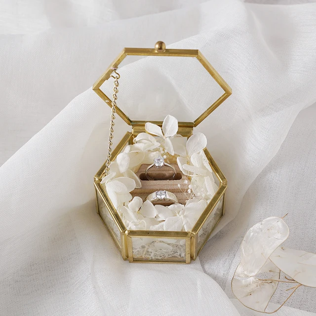 Pirinc Cam Hazine Kutusu Altin Nisan Yuzugu Tasiyici Kutusu Kisisellestirilmis Dugun Bantlari Yuzuk Yastik Rustik Halka Tutucu Cicek Kutusu Taki Ambalajlama Ve Sergileme Aliexpress