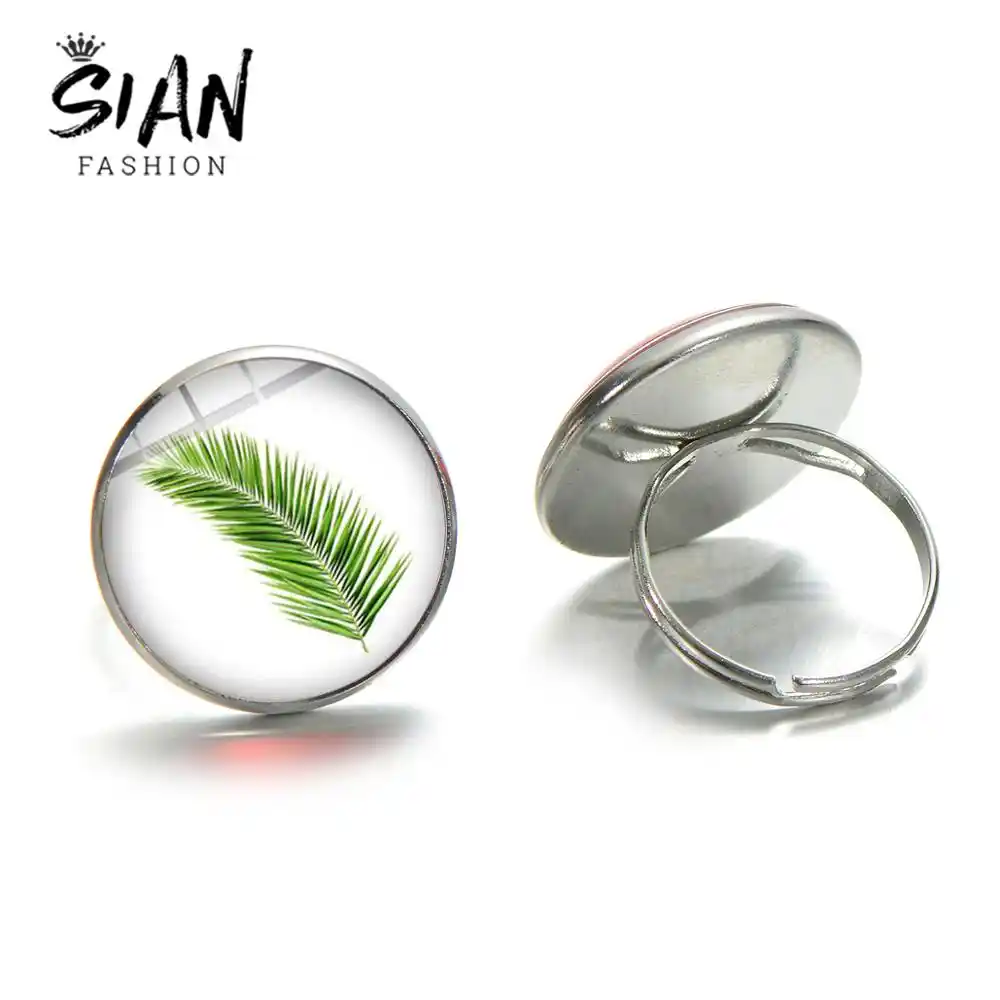 Sian Palmiye Yapraklari Minimalizm Cam Yuzuk Yesil Bitki Cicek Resim Cabochon Yuzukler Kadinlar Icin El Yapimi Yaz Orman Tema Taki Halkalar Aliexpress