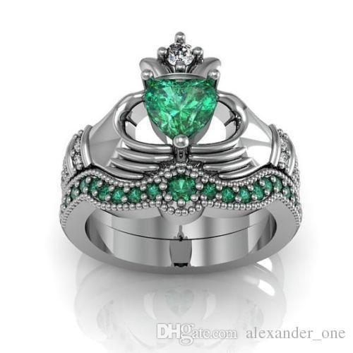 Satin Al Sonsuz Claddagh Yuzugu Kadinlar Hediye Boyutu 5 11 Luks 10kt Beyaz Altin Dolgulu 1ct Kalp Yesil Safir Kadinlar Nisan Dugun Halka Ayarlar Tl116 57 Dhgate Comda