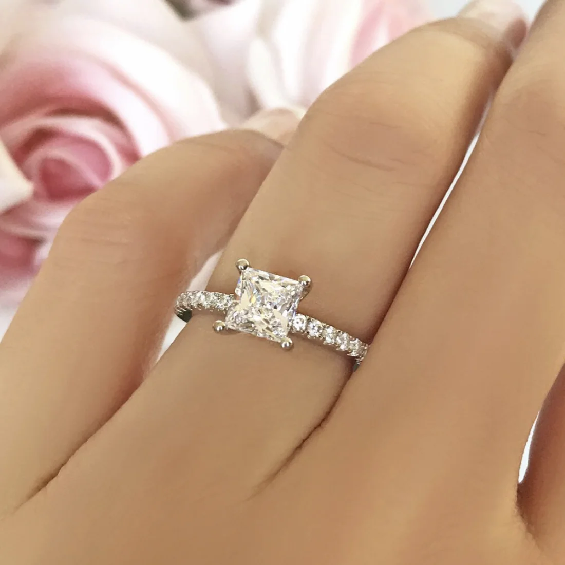 Zumrut 925 Ayar Gumus Yuzuk Parmak Dort Penceleri Prenses Kesim Topaz Tas Zarif Yuzuk Kadinlar Icin Nisan Dugun Takisi Halkalar Aliexpress