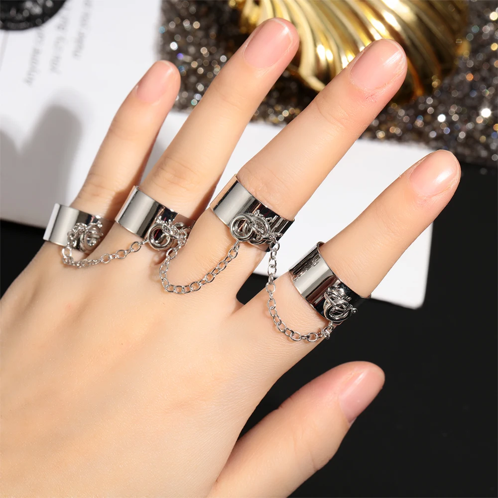 Punk Serin Yuzuk Cok Katmanli Zincir Ayarlanabilir Dort Acik Parmak Yuzuk Alasim Kadin Hip Hop Dondur Yuzuk Kadinlar Icin Parti Hediye Halkalar Aliexpress