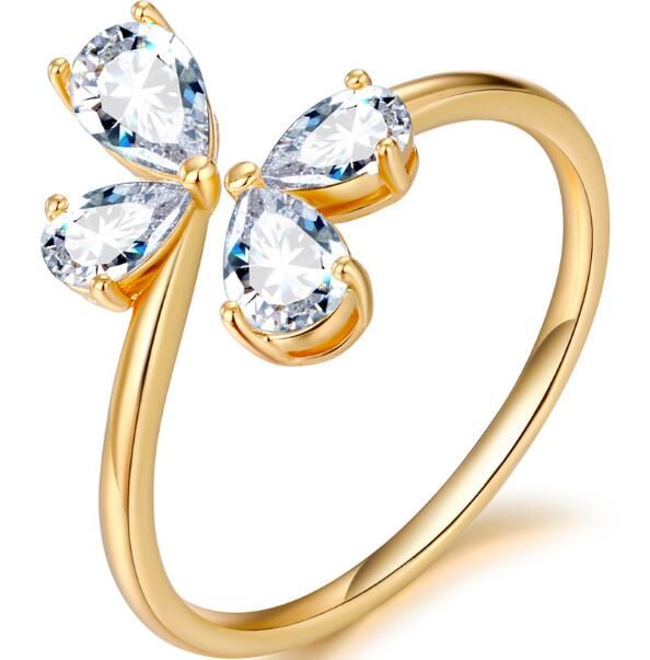 Guzel Gul Altin Renk 3 In 1 Avusturyali Zirkonya Rhinestone Dort Yaprakli Yonca Tasarim Lady Parmak Yuzuk Toptan Yuzukler Goodsfaster News