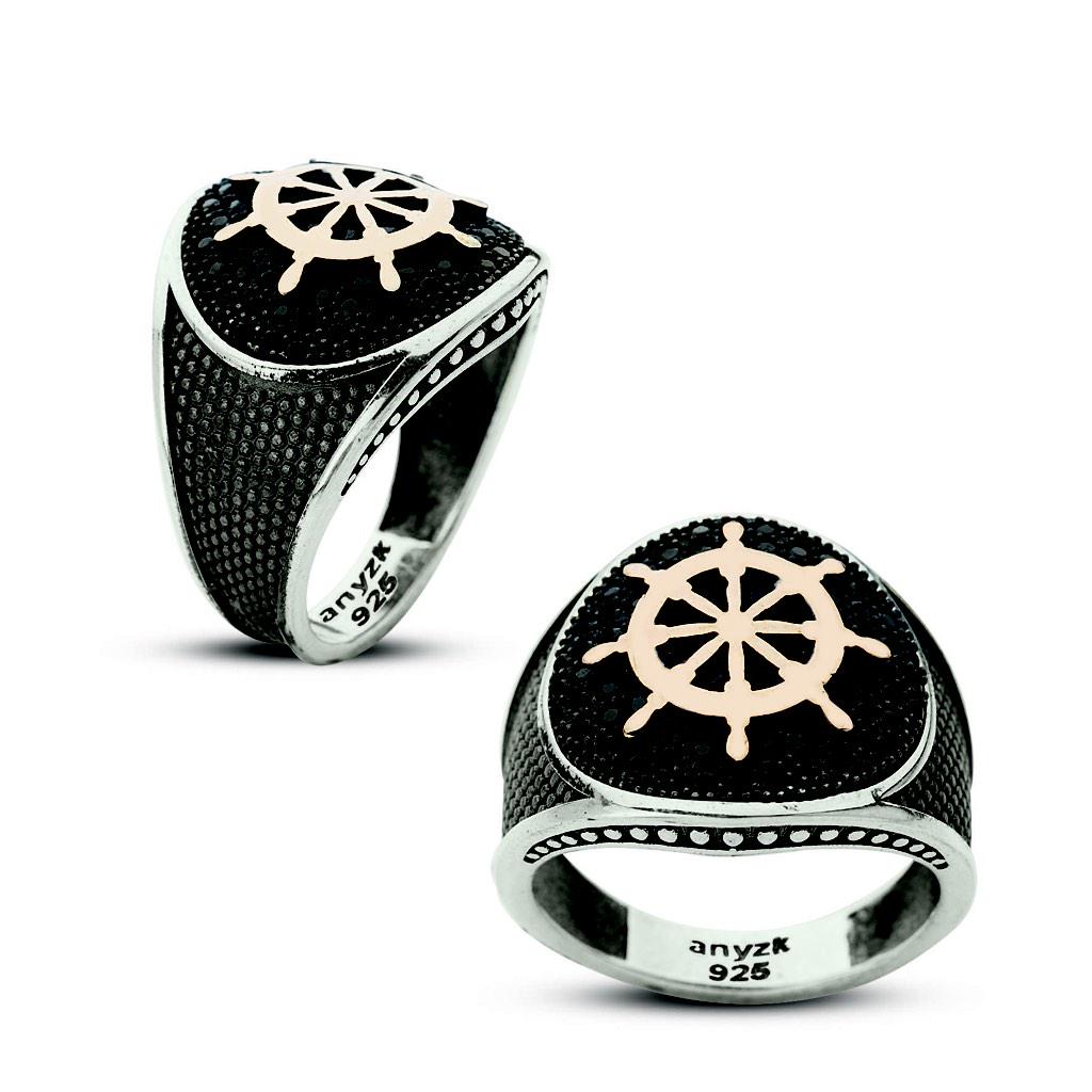 Denizci Gemi Capasi Karbon Zeminli Gumus Erkek Yuzugu Takiyolu Gumus Taki Ve Aksesuar