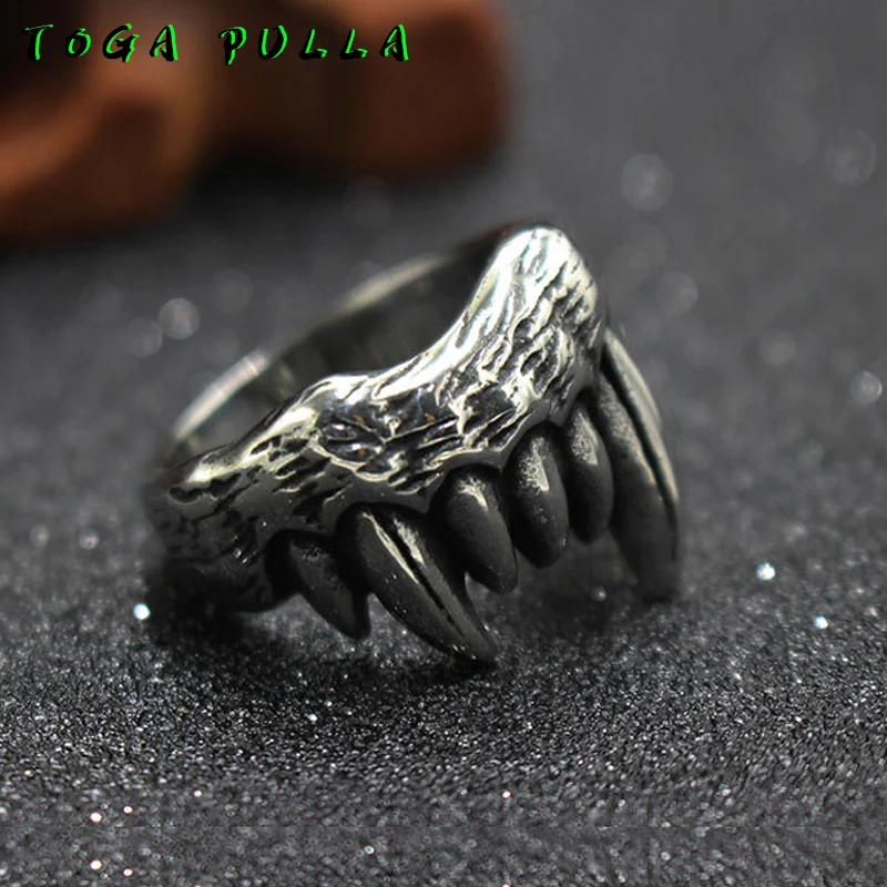 Otoriter Gumus Paslanmaz Celik Erkek Hayvan Disleri Motorcu Yuzugu Kisisellestirilmis Seytan Dis Punk Gotik Yuzuk Erkek Taki Hediye Halkalar Aliexpress