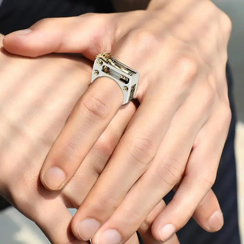 1 Adet Geometrik Mekanik Disli Cark Erkek Yuzuk Moda Iki Ton Unisex Yuzuk Dugun Band Parmak Yuzuk Unisex Parti Taki Halkalar Aliexpress