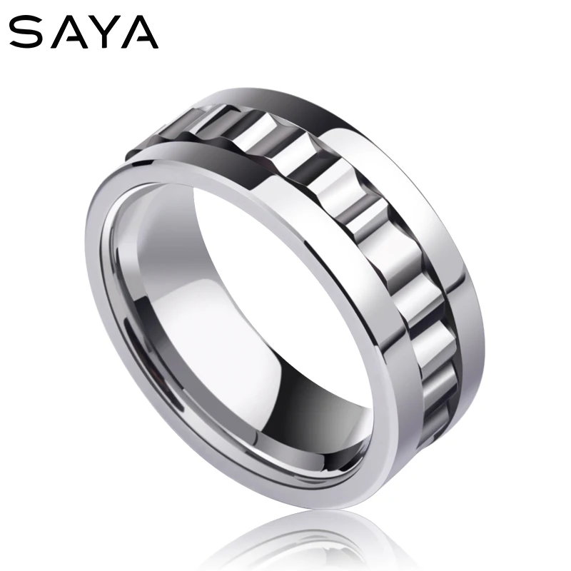 2021 Erkekler Tungsten Yuzuk 8mm Genislik Ile Yuksek Cilali Doner Disli Sansli Yuzuk Ucretsiz Kargo Gravur Null Aliexpress