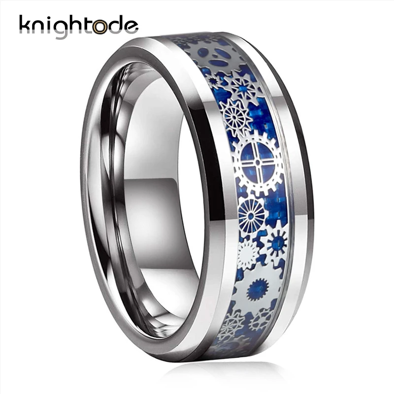 Erkekler Kadinlar Dugun Band Mekanik Disli Cark Tungsten Celik Yuzuk Egimli Kenarlari Ile Mavi Karbon Iplik Kakma Parmak Taki Halkalar Aliexpress