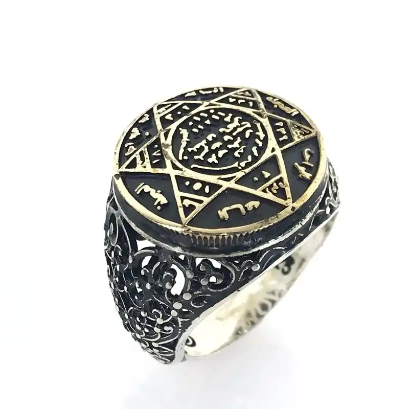 Muhru Suleyman Davut Yildizi Duali Ust Kalite Gumus Erkek Yuzuk Lazimbana Da
