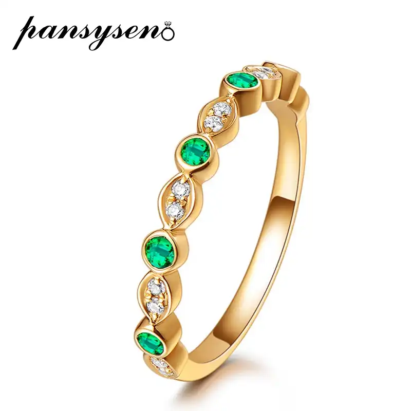 Pansysen 18k Altin Renk Zumrut Elmas Yuzukler Kadinlar Icin Vintage Tiny Dugun Nisan Gumus 925 Yuzuk Toptan Guzel Taki Halkalar Aliexpress