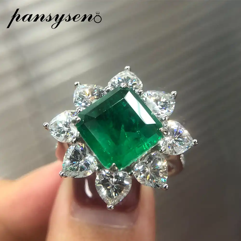 Pansysen Zarif Luks 10mm Kare Zumrut Yuzuk Kadinlar Icin Kadin Yildonumu Kokteyl Parti Pirlanta Yuzuk Guzel Taki Hediyeler Halkalar Aliexpress