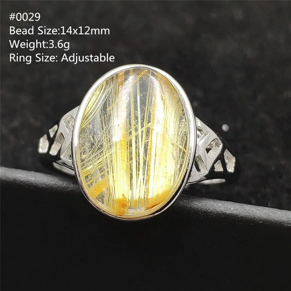 Hakiki Dogal Altin Rutilated Kuvars Ayarlanabilir Yuzuk Oval Gumus Kadin Erkek Cocuklar Icin Temizle Boncuk Zengin Tas Yuzuk Taki Aaaaa Halkalar Aliexpress