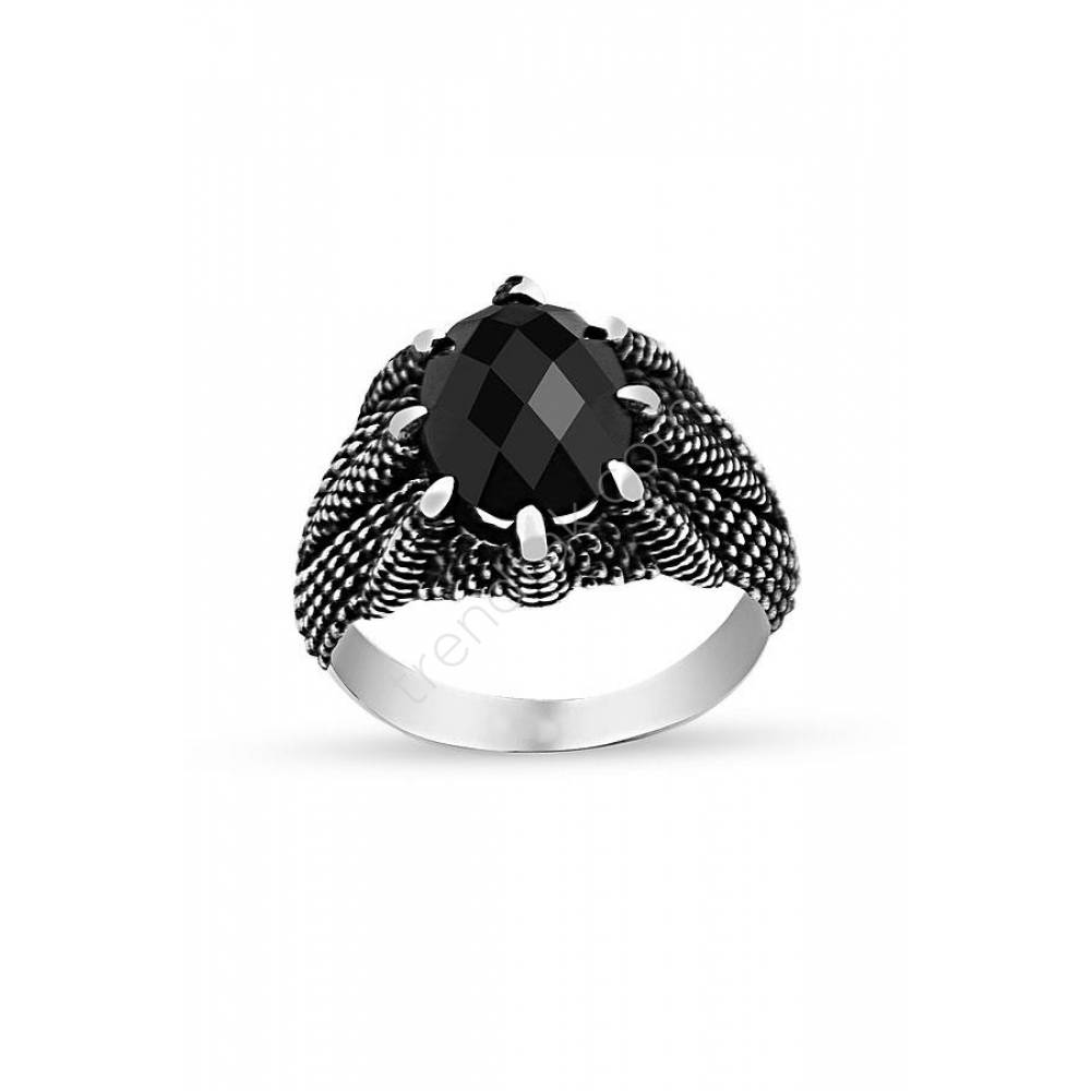 925 Ayar Gumus Siyah Oniks Tasli Erkek Gumus Yuzuk Nrz024
