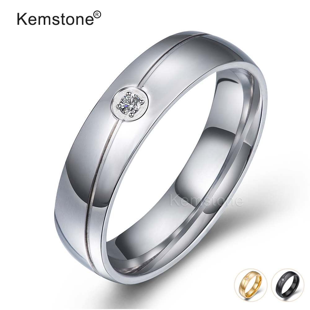 Kemstone Fashion Silver Gold Black Single Diamond 6mm Stainless Steel Ring Jewelry Gifts For Men Women Shopee Singapore