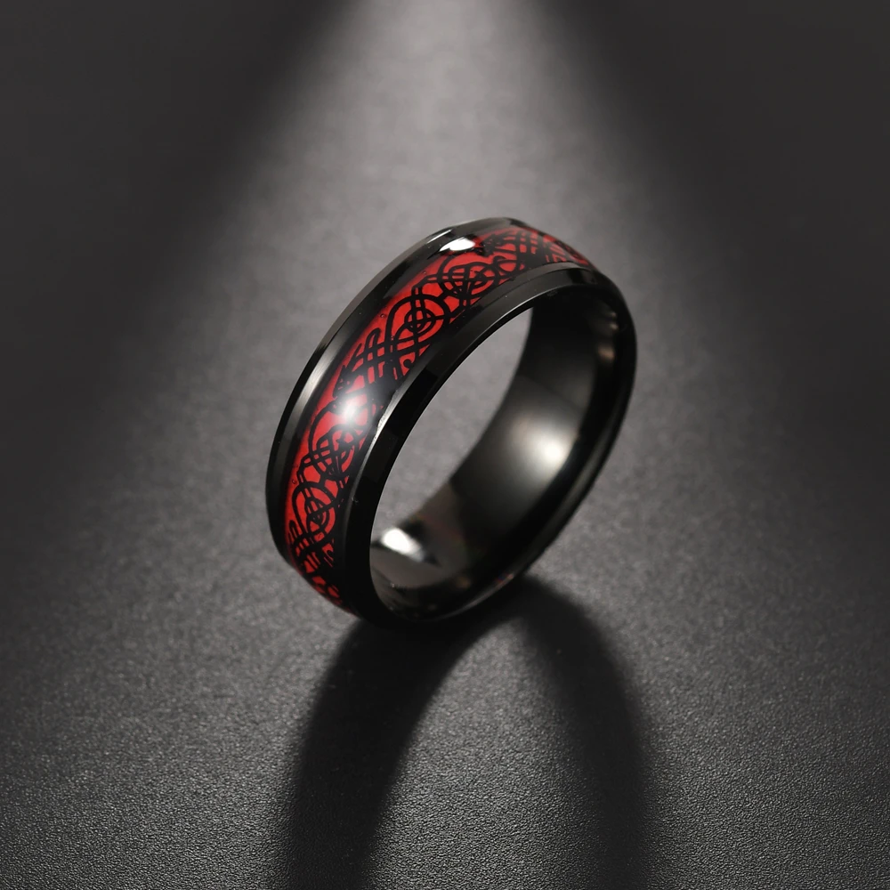 Erkek Yuzuk Taki Kirmizi Siyah Ejderha Kakma Konfor Fit Paslanmaz Celik Yuzukler Erkekler Kadinlar Icin Alyans Genis 8mm Boyutu 7 8 9 10 11 Halkalar Aliexpress