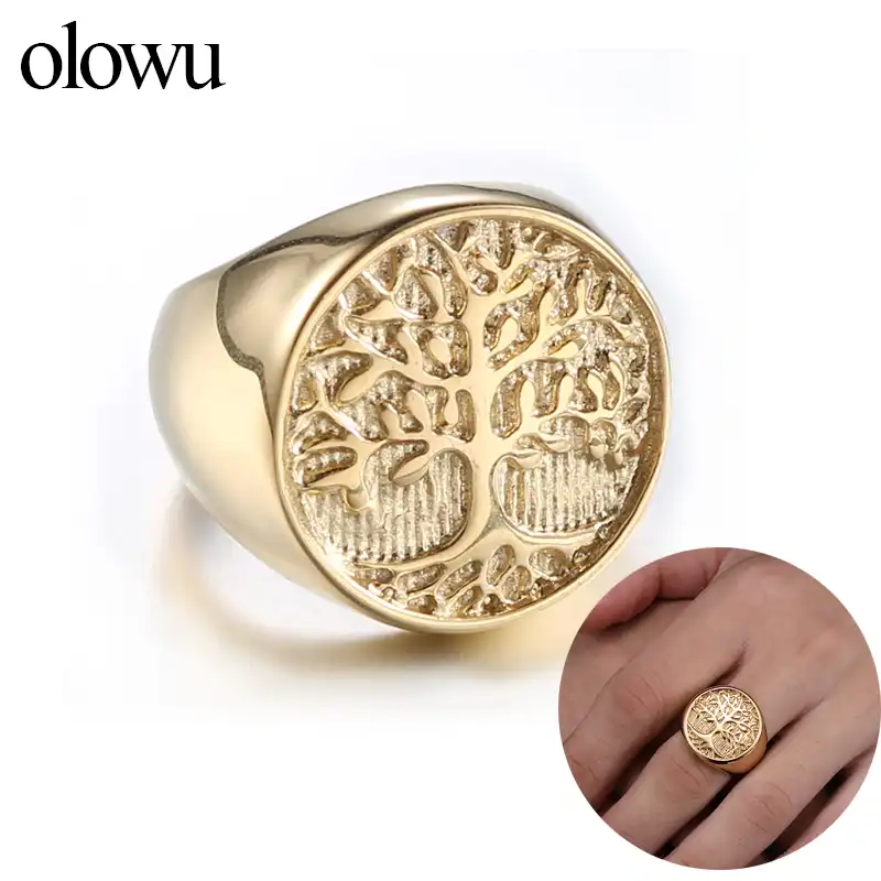 Olowu Genis Genislik Yuvarlak Erkek Yuzuk Altin Ton Paslanmaz Celik Dokum Yuzugu Erkek Punk Gotik Insan Hayat Agaci Taki 20mm Halkalar Aliexpress