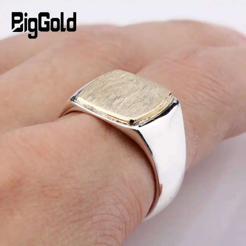 925 Ayar Gumus Signet Erkekler Yuzuk Basit Zarif Altin Renk Kare Fircalanmis Signet Yuzuk Erkekler Icin Kadinlar Kazinmis Taki Hediye Halkalar Aliexpress