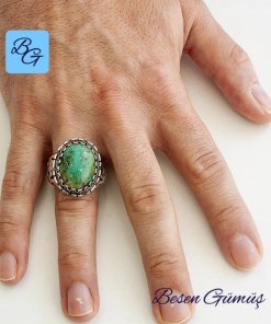 Oval Dogal Firuze Tasi Turkuaz Gumus Yuzuk Besen Gumus