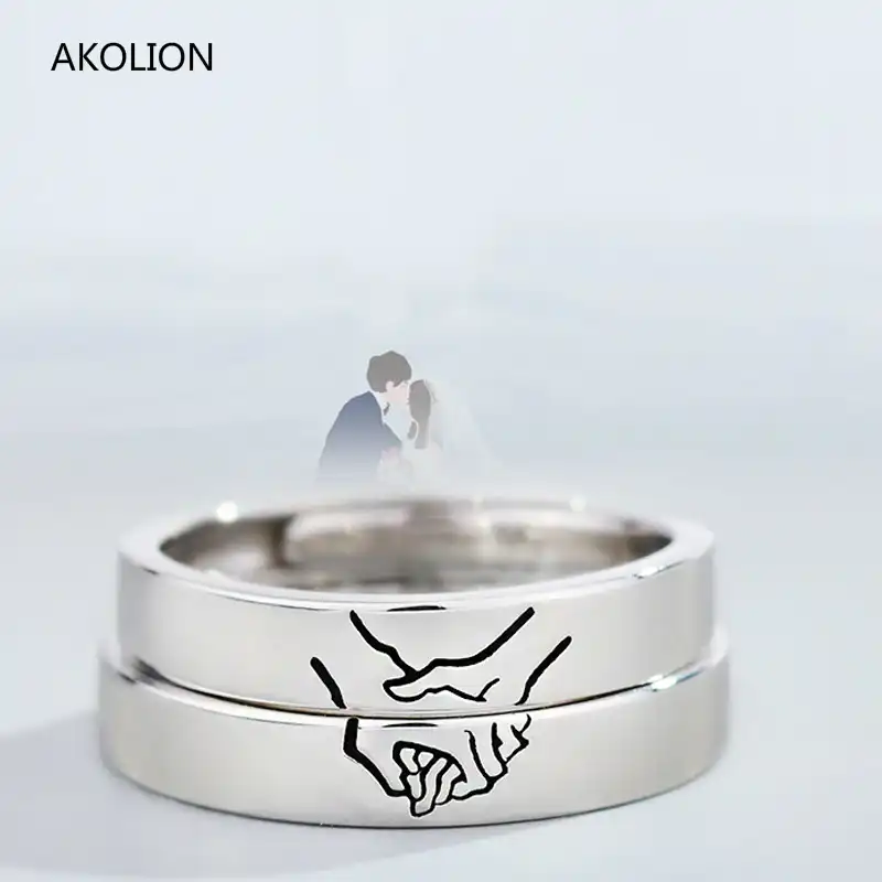 Gumus Renk Yuzuk Kadin Erkek Cift Yuzuk Cift El Ele Desen Yuzuk Buyuleyici Kadin Severler Basit Moda Taki Nisan Yuzukleri Aliexpress